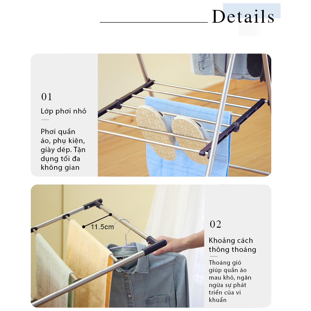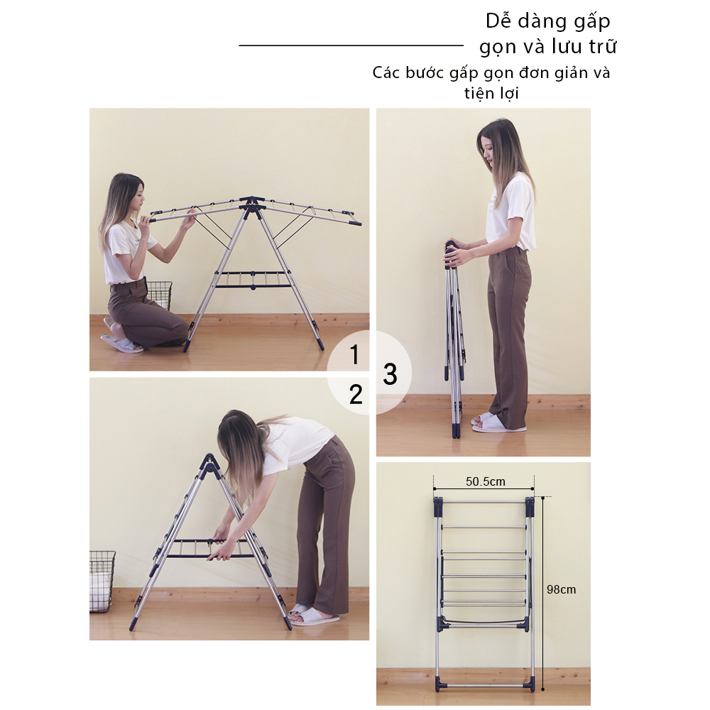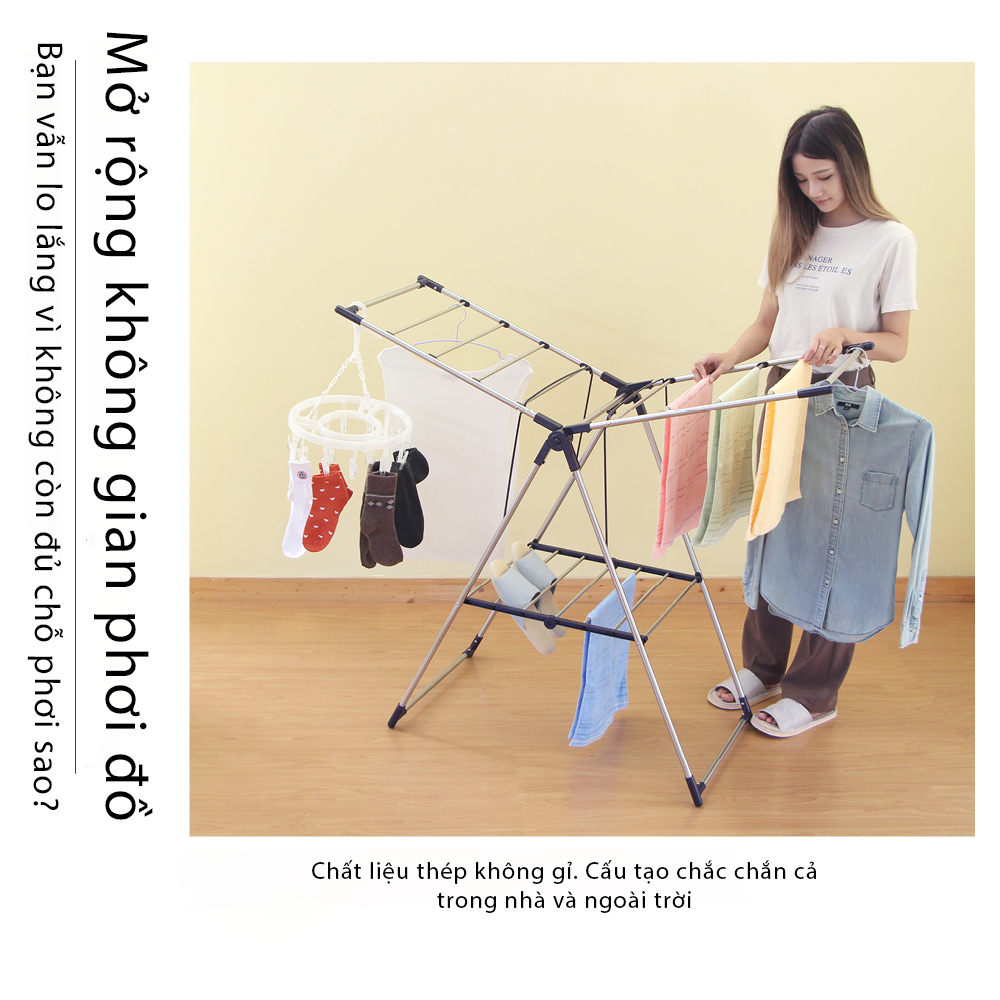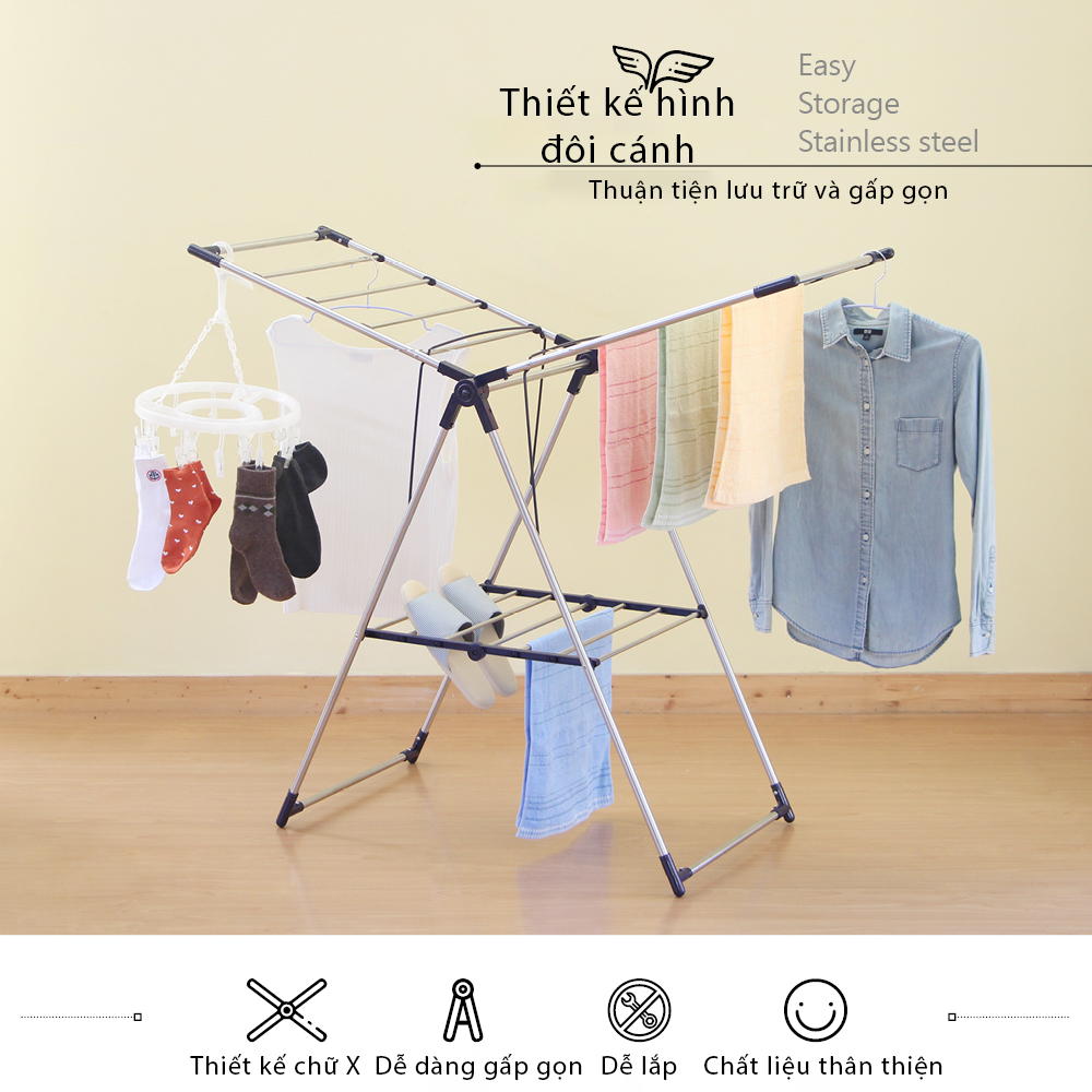 Cây phơi quấn áo gập gọn, chất liệu thép không rỉ RICHOME I-R-HA138. Hàng nhập khẩu cao cấp